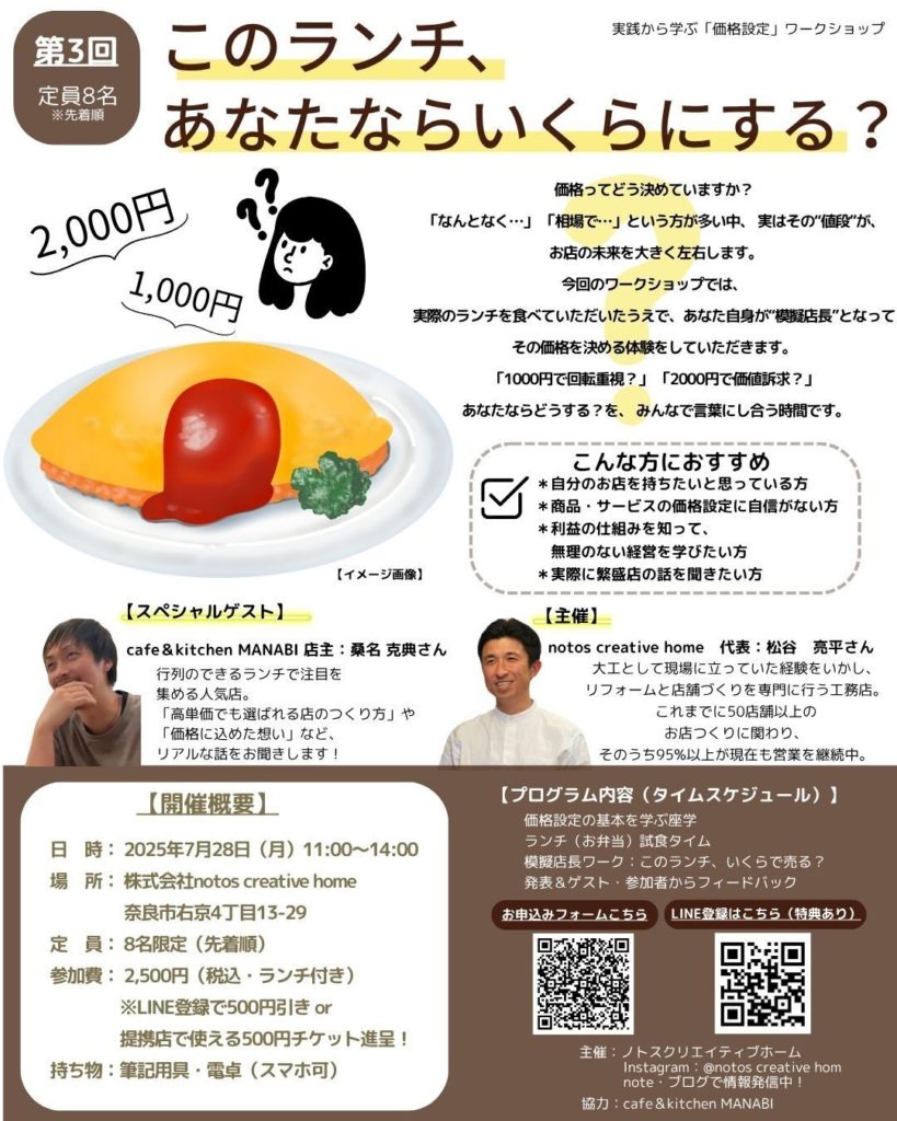 「このランチ、いくらにする?」価格から考えるお店づくりワークショップを開催します