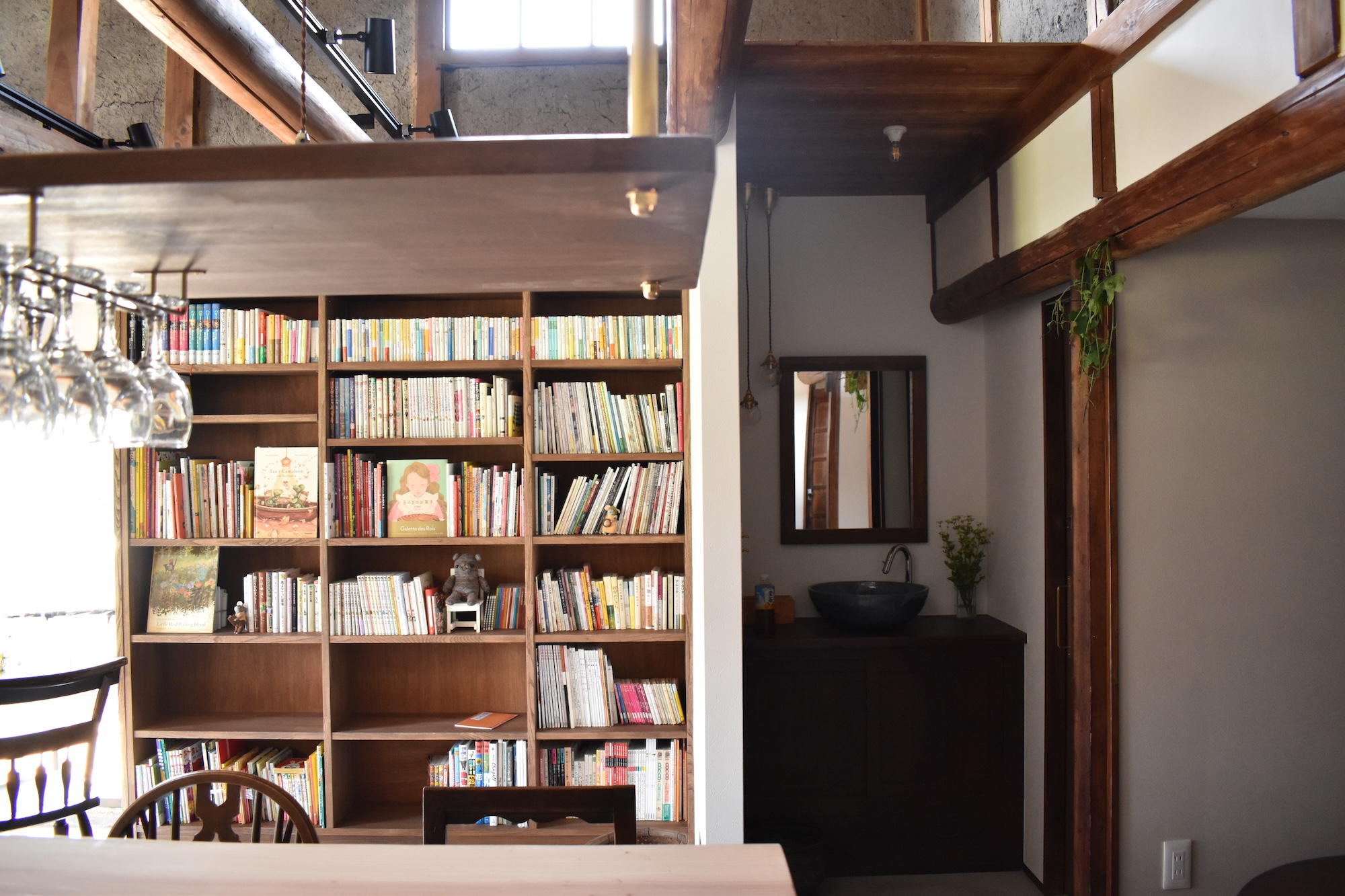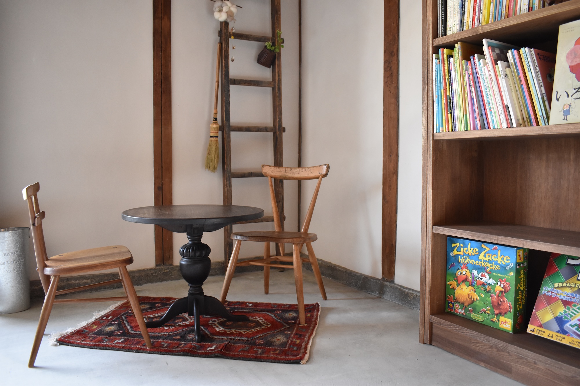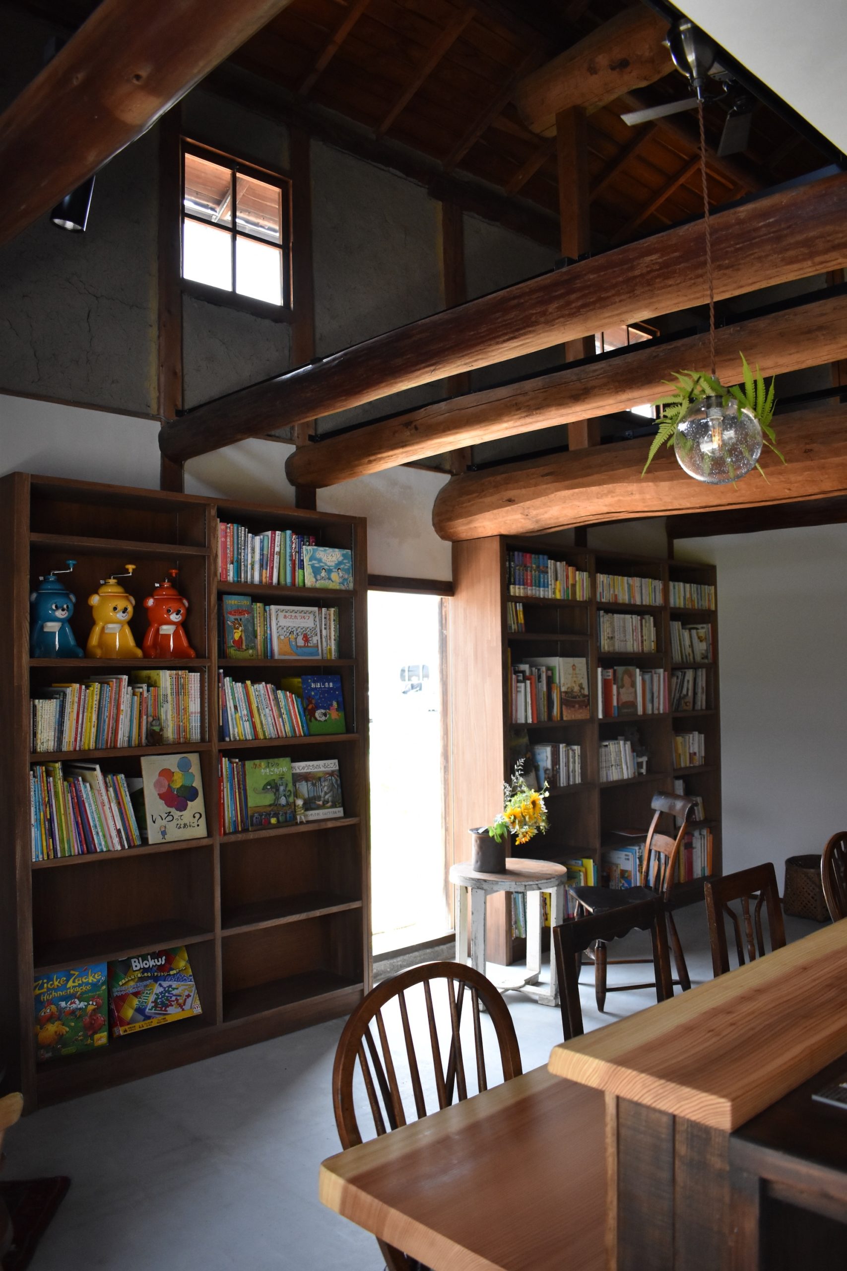 木のぬくもりとたくさんの絵本に囲まれた空間で、美味しくて体に優しいご飯をいただけます。